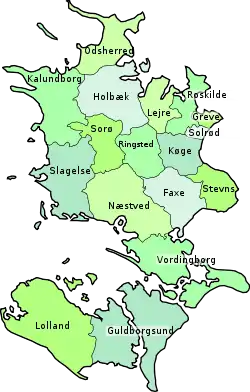 A Região da Zelândia (Region Sjælland) é constitida por 17 comunas (kommuner).
