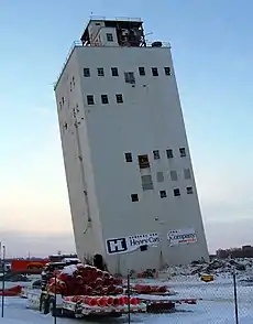 No dia 3 de dezembro de 2005 trabalhadores tentaram implodir o prédio sem sucesso.[2] A torre de concreto caiu em seu próprio porão, inclinando-se para um lado, mas ainda de pé. Equipes de demolição tinham tentado soltar a estrutura por cortar as barras de reforço em toda a estrutura, e então, colocar cargas explosivas em um anel ao redor da base e até entre os silos verticais. No entanto, a integridade da estrutura era tal que, como a base foi arrancada, a estrutura principal caiu diretamente para baixo batendo na base danificada dentro do porão.
