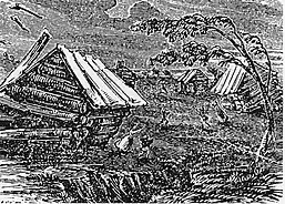 - 23 de janeiro de 1812, ocorreu às 9h15 da manhã com o epicentro em torno de Nova Madrid,[5] embora isso seja contestado.[6] Este foi provavelmente o menor dos dois sismos principais, mas resultou em uma deformação generalizada no solo, deslizamentos de terra e fissuras. Um ponto de vista minoritário afirma que o epicentro deste sismo foi no sul de Illinois. Um painel de especialistas de 2011 pediu mais pesquisas para esclarecer este ponto, afirmando que a hipótese de Illinois significaria que existe uma seção extensa de falha, talvez ainda carregada e capaz de hospedar um grande sismo no futuro.[5][9]