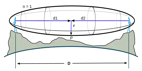 A equação geral para calcular o raio da zona de Fresnel em qualquer ponto P entre as extremidades do link é o seguinte:
