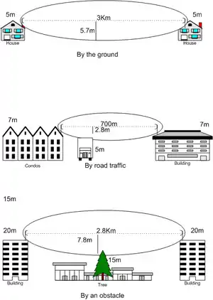 Para maximizar o sinal do receptor , é preciso minimizar o efeito da perda de obstrução removendo obstáculos da linha de visada. Os sinais mais fortes estão na linha direta entre o transmissor e o receptor e sempre encontram-se na primeira zona de Fresnel.