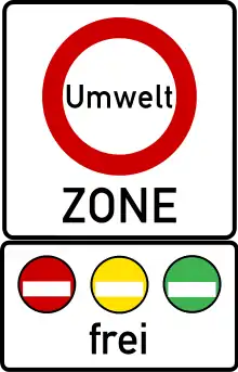 Os critérios de classificação das Zonas Ambientais (Umweltzone) foram estabelecidos a nível nacional pelo Governo Federal, através da Lei Federal sobre a rotulagem de veículos a motor com baixo contributo para a poluição, e implicam a aposição obrigatória de um vinheta ambiental (autocolante) no pára-brisas do veículo para poder circular dentro de uma Zona Ambiental (Umweltzone).[34]