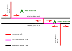 - O Monte Submarino Hecate, localizado na posição 🌍, assim designado em homenagem ao navio oceanográfico HMS Hecate (A137). Está localizado no flanco norte da Charlie-Gibbs Sul, a leste de um curto segmento de rifte.