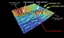 A região em torno da Zona de Fractura Charlie-Gibbs contém dois montes submarinos aos quais foram atribuídos topónimos internacionais: