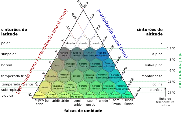 A biotemperatura é baseada na duração da estação de crescimento e na temperatura. É medido como a média de todas as temperaturas, com todas as temperaturas abaixo de zero e acima de 30 °C ajustadas para 0 °C,[4] já que as plantas estão dormentes nessas temperaturas. O sistema de Holdridge usa a biotemperatura primeiro, ao invés do viés de latitude temperado das zonas de vida de Merriam, e não considera principalmente a elevação. O sistema é considerado mais adequado às complexidades da vegetação tropical do que o sistema de Merriam.