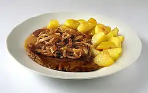 Zwiebelrostbraten (significando rosbife de cebola) é um prato tradicional da Áustria e da região alemã da Suábia. Consiste num bife coberto com rodelas de cebola assadas no forno.