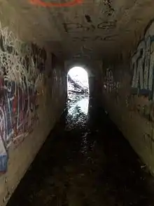 A graffiti covered tunnel at the bottom of the Devil's Punch Bowl, located in Menomonie Wisconsin.