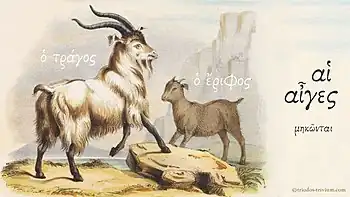 αἱ αἶγες μηκῶνται – “The goats bleat.”