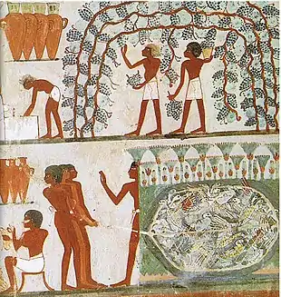 From Demotic kꜣm (garden), from Egyptian kꜣm (vineyard, garden), from Proto-Afroasiatic [Term?]; compare Hebrew כֶּרֶם (kerem, vineyard), Aramaic כַּרְמָא (karmā, vineyard), Arabic كَرْم (karm, vineyard).