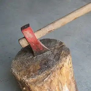 - a piece of wooden log used for chopping wood, cutting meat, etc.; chopping block