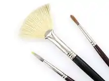 - brush, paintbrush (instrument for applying paint)