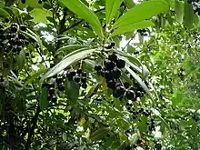 Prunus laurocerasus foliage and fruits in Rize, Pontus