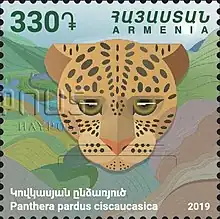 Armenian postage stamp depicting Panthera pardus ciscaucasica (Caucasian Leopard)