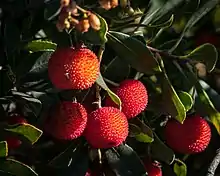 Possibly somehow related to Spanish madroño, Portuguese medronho (“strawberry tree and fruit”), Catalan maduixa (“strawberry”), Basque martsuts, martuza (“blackberry”), Lombard mạtū́ (“raspberry”). For these and some other Romance words see Schuchardt, FEW and Grzega, without the connection to մաթուզ (matʿuz).[1][2][3]