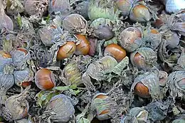 A dialectal word which has been adopted as the standard designation of hazelnut. From Arabic بُنْدُق (bunduq, “hazelnut”). Contaminated with պնդ- (pnd-, “durable, strong”) and the suffix -ուկ (-uk). The earliest attestation of the form պնդուկ (pnduk) is from 1633. Middle Armenian has պնդուխ (pndux), պնտուխ (pntux), ֆնտուխ (fntux) from the 15th century.