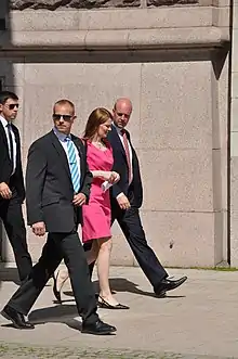 מארי קיביניימי ופרדריק ריינפלט עם שומרי ראש