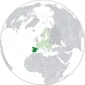 - Spain (a country in Southern Europe, including most of the Iberian peninsula)