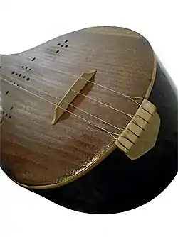1. (music, lutherie) tailpiece, or something which secures a string or wire