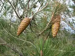 صُنوبَر • (ṣunōbar) m (collective, singulative صُنُوبَرَة f (ṣunōbara))