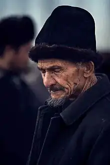 قالپاق • (qalpaq) (plural قالپاقلار (qalpaqlar))