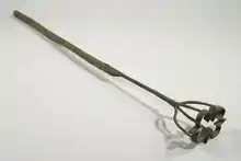- branding iron, a piece of metal used to brand livestock when heated