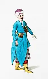 چوقهدار • (çokadar, çohadar, çukadar, çuhadar) (plural چوقهدارلر (çokadarlar, çohadarlar, çukadarlar, çuhadarlar))