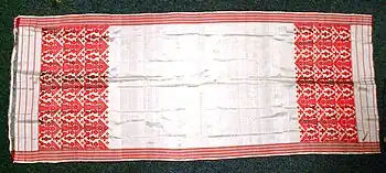 • Although গামোচা (gamüsa) literally means "body wiper", its usage in Assamese culture is not only like a towel but it's also a way of honoring. It's an important element of many festivals of Assam, including Bihu. Different communities have their own styles of gamosa. The most common one is white with red works.