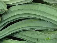 - (botany) the unripe fruit of the sharp-angled cucumber (Luffa acutangula); angled loofah, sinkwa towelsponge