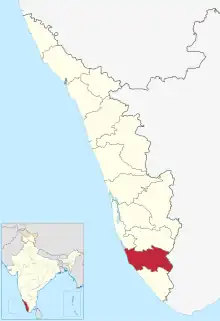 - (districts of Kerala) കേരളത്തിലെ (kēraḷattile) ജില്ലകൾ (jillakaḷ); ആലപ്പുഴ (ālappuḻa), എറണാകുളം (eṟaṇākuḷaṁ), ഇടുക്കി (iṭukki), കണ്ണൂർ (kaṇṇūṟ), കാസർഗോഡ് (kāsaṟgōḍŭ), കൊല്ലം (kollaṁ), കോട്ടയം (kōṭṭayaṁ), കോഴിക്കോട് (kōḻikkōṭŭ), മലപ്പുറം (malappuṟaṁ), പാലക്കാട് (pālakkāṭŭ), പത്തനംതിട്ട (pattanantiṭṭa), തിരുവനന്തപുരം (tiruvanantapuraṁ), തൃശൂർ (tr̥śūṟ), വയനാട് (vayanāṭŭ), (Category: ml:Districts of Kerala)