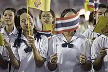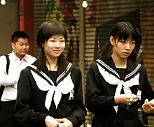 1. (classifier อัน) scarf, necktie, or ribbon worn below or beneath the collar of a sailor suit or similar uniform.