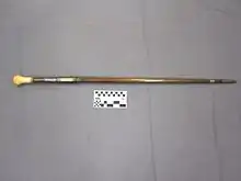 - (ไม้~) staff used as a weapon, symbol of authority, or walking cane, sometimes incorporating a concealed blade similar to a swordstick.