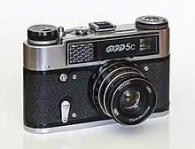 Borrowed from English camera, from Latin camera (“chamber or bedchamber”), from Ancient Greek καμάρα (kamára, “vaulted chamber, vault”).