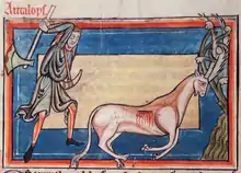 A depiction of the antelope (mythical creature) in the Harley Bestiary (1240)