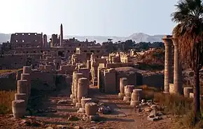 From Ancient Greek Θῆβαι (Thêbai), from Egyptian tꜣ-jpy (“the temple”).