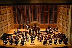 Borrowed from English orchestra, from Latin orchēstra, from Ancient Greek ὀρχήστρα (orkhḗstra).[1][2][3]