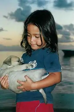 少女 (shōjo): a girl holding a puppy.