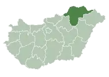 The location of Borsod-Abaúj-Zemplén county on the map of Hungary