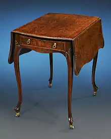 - (attributive) A style of furniture designed by, or resembling that of, Thomas Chippendale, generally of simple but graceful outline with delicately carved rococo ornamentation, sculptured either in the solid wood or, in the cheaper specimens, separately and glued on.