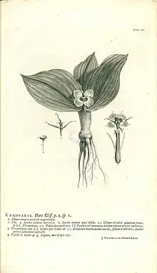 - (species): Zingiberales - order; Zingiberaceae - family; Zingiberoideae - subfamily; Zingibereae - tribe; Kaempferia - genus