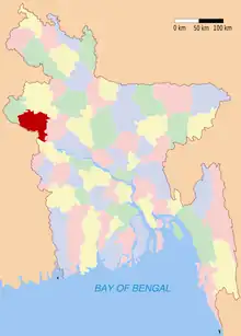 1. One of the eight districts in the Rajshahi Division of Bangladesh