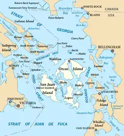 - A Pacific Northwest archipelago of 172 islands of the state of Washington, United States off the southeast coast of Vancouver Island and north of Puget Sound.