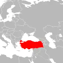 - Turkey (A country at the intersection of Southeast Europe and West Asia on the Mediterranean)
