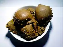 - A semicircle biscuit with a candied coconut meat filling.