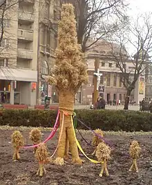 - A Ukrainian Christmas decoration representing an offering of the best of the harvest, and consisting of wheat ears or stalks tied up with colorful threads.