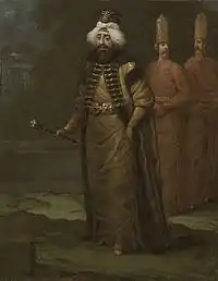 Jean Baptiste Vanmour, Portret van Sultan Ahmed III (Portrait of Sultan Ahmed III, 1703–1717), collection of the Rijksmuseum, Amsterdam, the Netherlands. The Sultan of the Ottoman Empire is depicted wearing a dolman (sense 1).