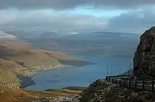 From Old Norse fjǫrðr, from Proto-Germanic *ferþuz, from Proto-Indo-European *pértus.