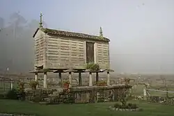 - an isolated, rectangular, wooden or rock building supported by columns, characteristic of the northwest of the Iberian peninsula and typically used to store grain or other agricultural produce