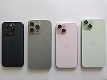 - (trademark) A smartphone of a series produced by Apple, which typically combine a camera phone, PDA, multimedia player, and wireless communication device.