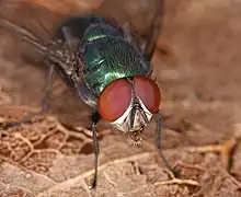 From Proto-Finnic *kärpähinen. Cognates include Finnish kärpänen and Estonian kärbes.