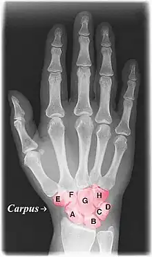 - (anatomy) carpal, carpal bone (any of the eight bones of the wrist (carpus))